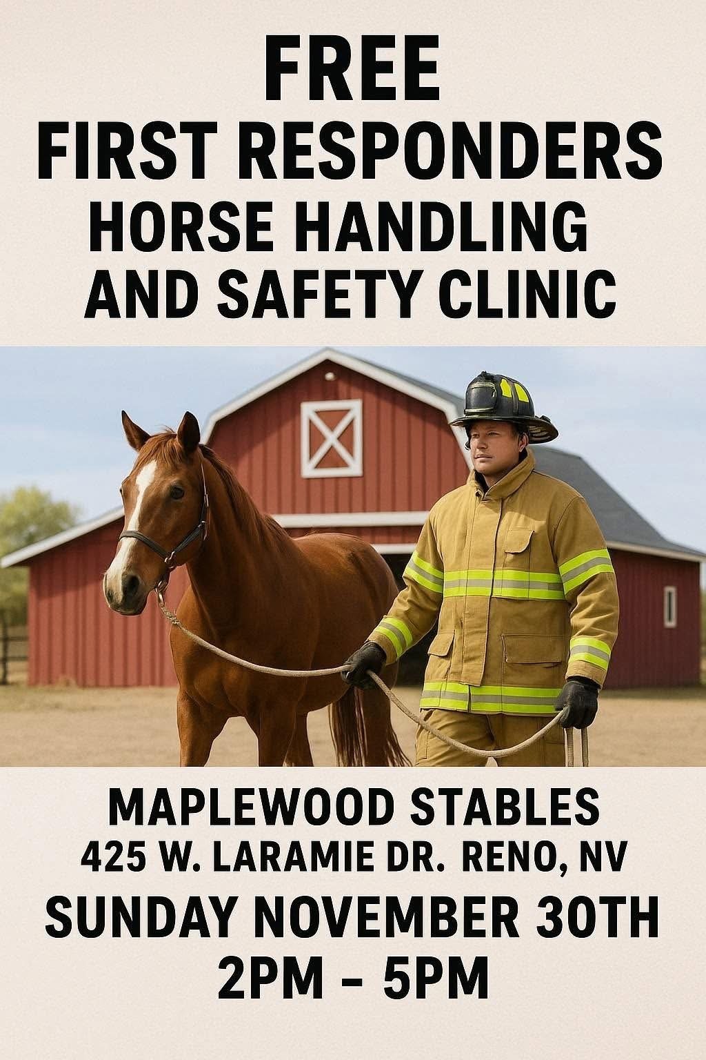 Free clinic for our first responders! Join Maplewood Stables on Sunday, 11/30, for a free clinic aimed at horse handling safety in times of emergency.